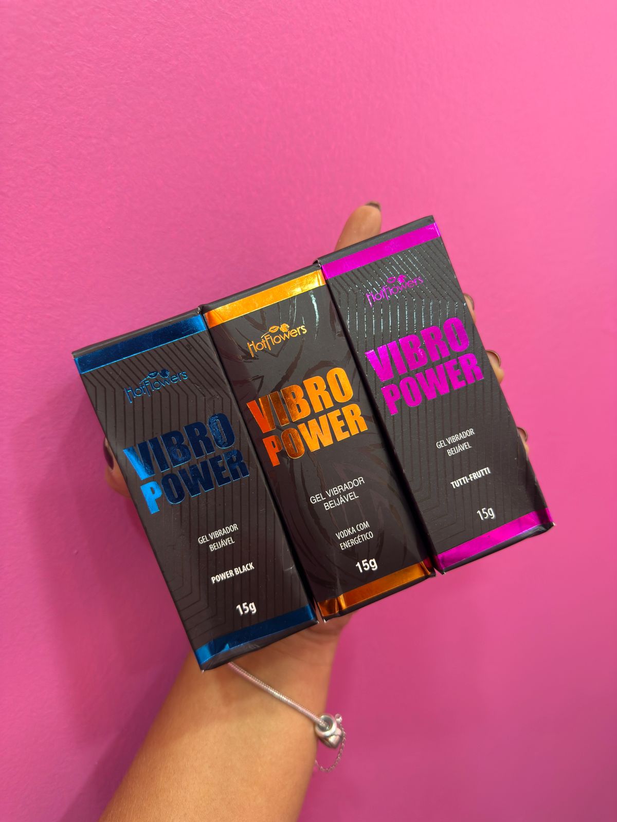 O gel ⚡VIBRO POWER⚡ da Hot Flowers é um maravilhoso vibrador liquido beijável,💋 ideal para quem deseja sentir sensações surpreendentes, vibrantes e intensas. Está disponível nos deliciosos sabores de: POWER BLACK, TUTTI-FUTTI, e VODKA COM ENERGÉTICO. Eles proporcionam um alto frescor juntamente a sensação eletrizante da vibração. Desenvolvido com extrato de jambú, tornando-se um excitante poderoso com características únicas de vibrações nas partes íntimas. Você pode usá-lo para a masturbação mutua, individual, para sexo oral(garganta profunda) e na hora do sexo. Além do seu efeito eletrizante você sentirá sensações refrescantes, aroma e sabor delicioso. O POWER BLACK tem o diferencial que na pele ele possui a sensação de aquecimento🔥 e na boca é extremamente refrescante.❄️